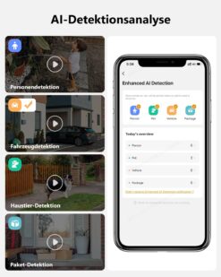 - 🎯 PIR + KI Erkennung – präzise Menschen- und Bewegungserkennung ohne Fehlalarme