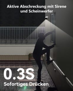 - 🚨 110 dB Sirene + Spotlight – aktive Abschreckung bei Bewegung