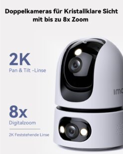 - 👁️ 2K Ultra HD (3 MP) – klarer 121° Weitwinkel mit 8× Digitalzoom