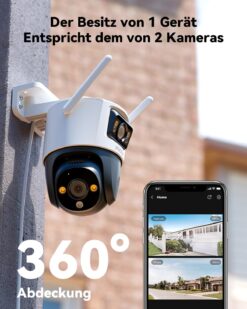 - 👁️ 8MP Gesamtauflösung: 5MP PTZ + 3MP Fix für maximale Detailtiefe