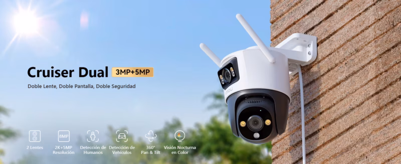 - 🎯 Doble Lente Independiente – Visión fija 3MP + PTZ rotatoria 3MP simultáneas