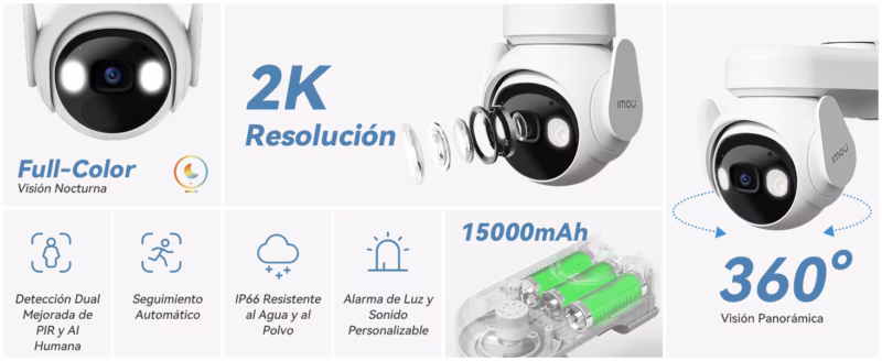 - Resolución: 2K Ultra HD (3MP – 2304×1296)